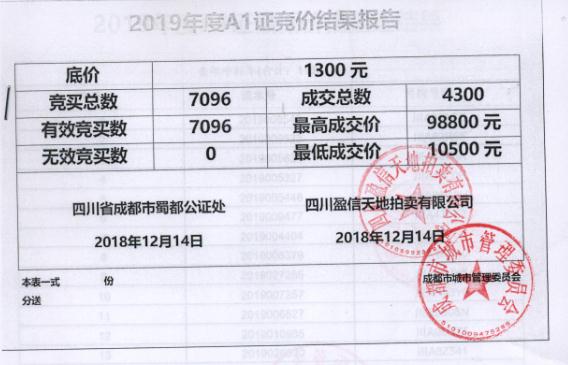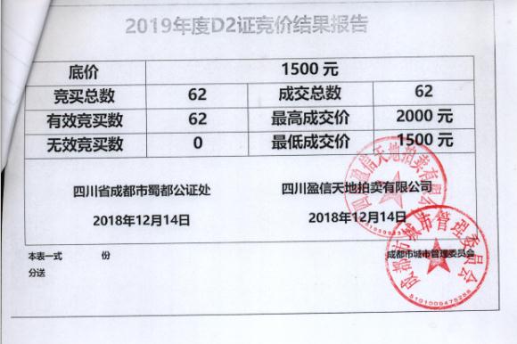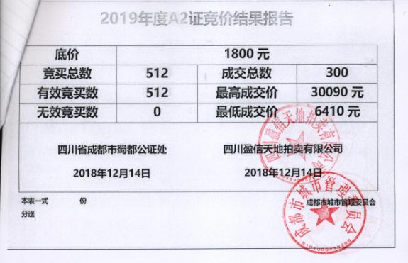2019年度成都市“貨運汽車城區(qū)道路使用權(quán)”公開競價結(jié)果公告