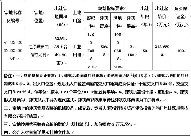 2、按照紅原縣人民政府要求,競買人在競得土地后須與紅原縣人民政府簽訂項目投資建設協議,并承諾嚴格按照協議推進項目建設。競得人在簽訂《掛牌交易成交確認書》之日起6個月內必須開工建設。